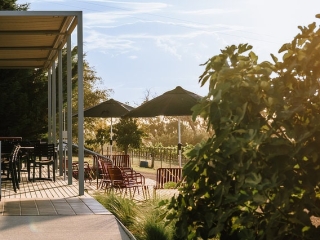 Modern Australian dishes with a Mediterranean flavour, incl. local cheese and mezze boards, stone baked pizza, and house baked desserts. Produce is handmade and sourced from Macedon Ranges artisan farmers and producers.